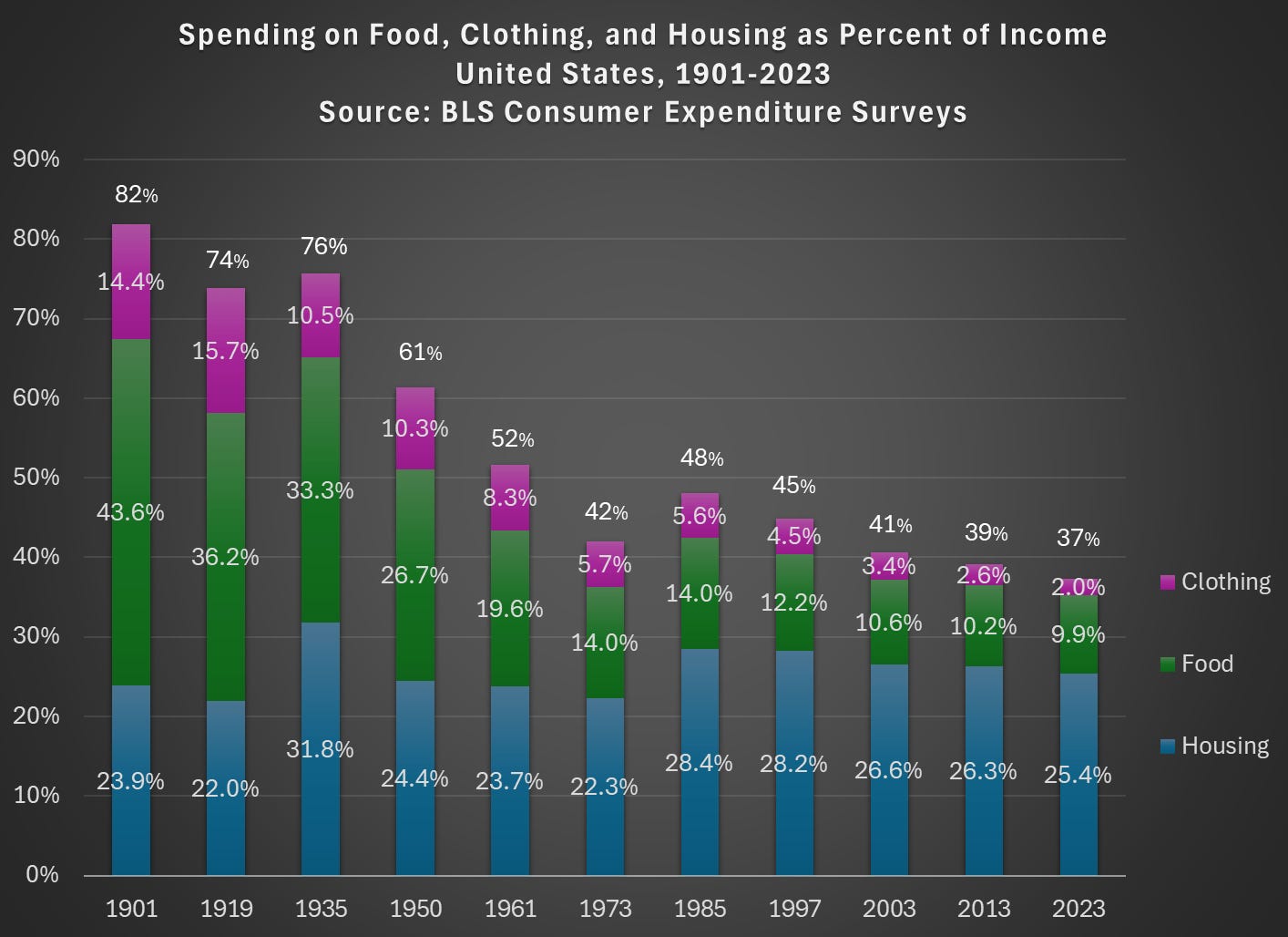 One way to visualize this fact is in the remarkable degree of stability in the percent of household income people spend on housing.