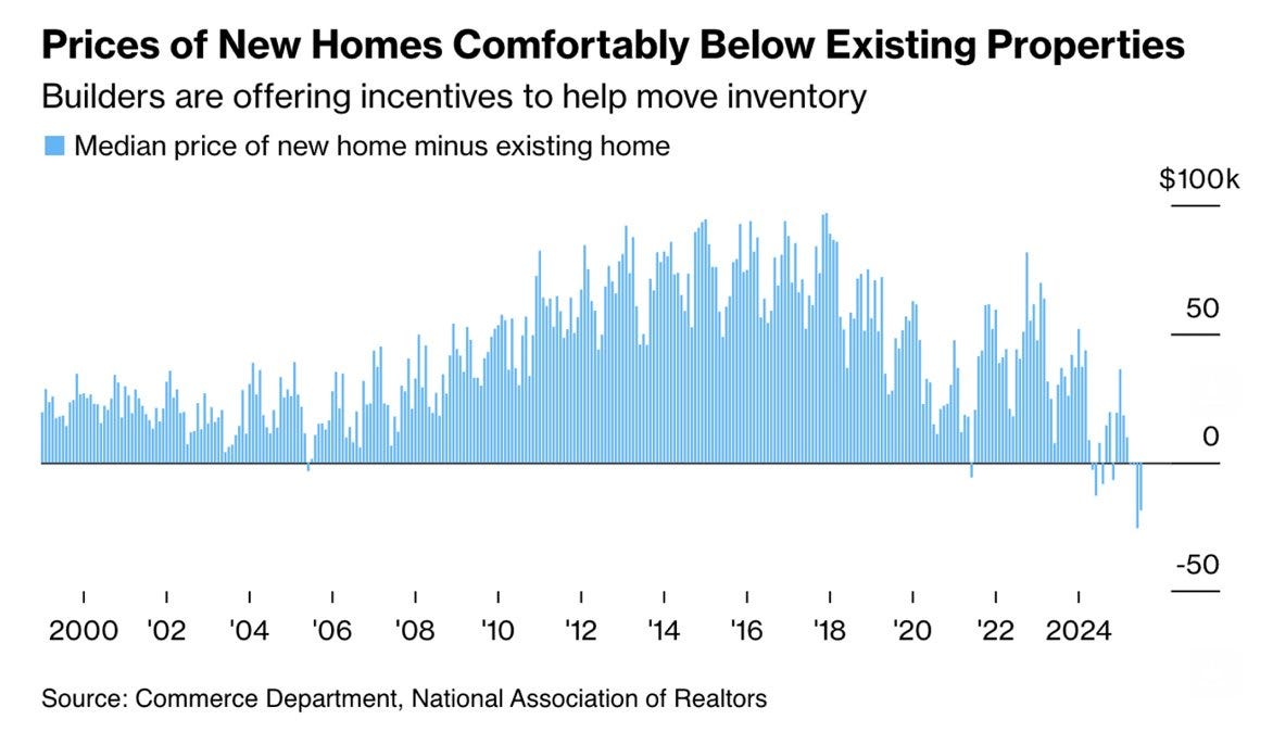 We're likely seeing the impact of "rate-locked" housing supply, whereby would-be sellers locked in to ZIRP-era mortgage rates are reluctant to list their homes or are even de-listing in lieu of decreasing the asking price — while on the other hand, newly-constructed homes are listed immediately and exchange hands at the market price.