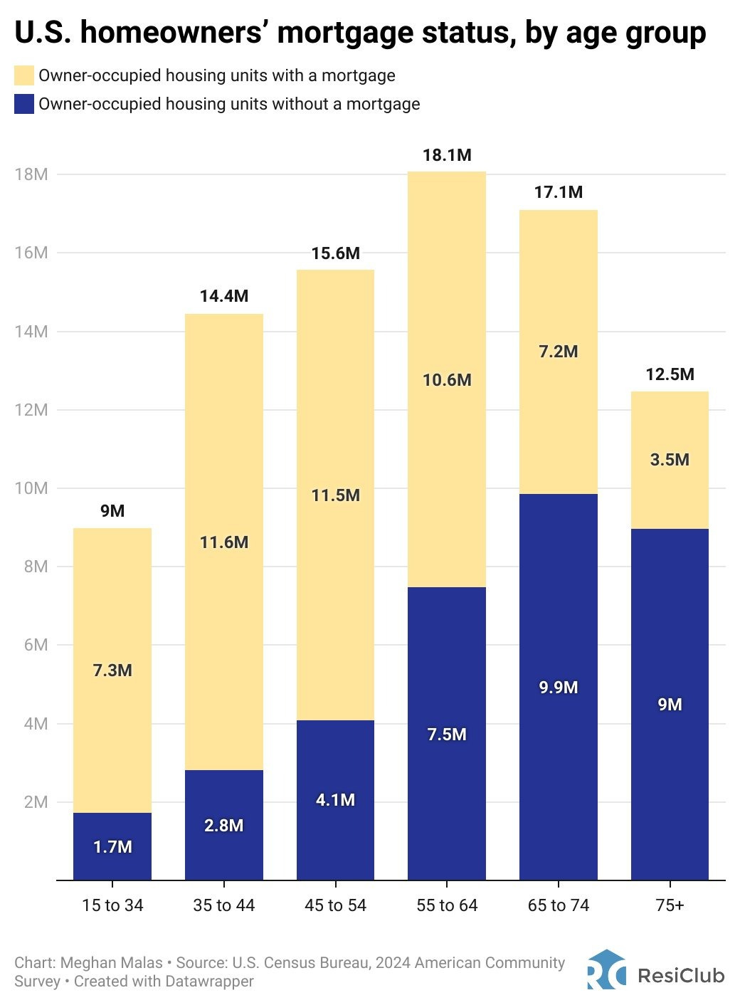 In addition to dominating demand in the market due to their accumulated home wealth and access to lines of liquidity, a staggering 40.3% of U.S. owner-occupied housing units are now mortgage-free — the overwhelming majority of which is comprised of Boomer (or geriatric-adjacent) home equity: