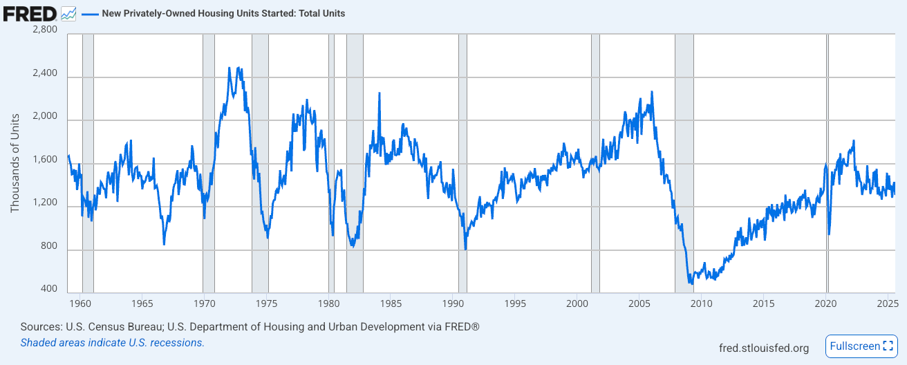 When examining the history of housing construction in the U.S., a clear cyclical boom-and-bust pattern emerges. The most recent and dramatic example came with the 2008 financial crisis, when builders pulled back sharply and new housing construction fell to some of the lowest levels on record.